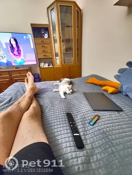 Белосерочерный, выпрыгнул в форточку на первом этаже, откликается на имя