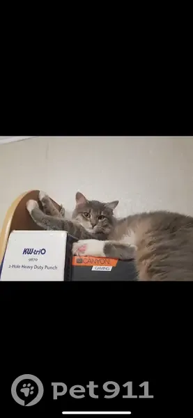 Пропала серая кошка в микрорайоне Южный. Живот и шейка белые с рыжими пятнами. На ней был красный ошейник с колокольчиком.