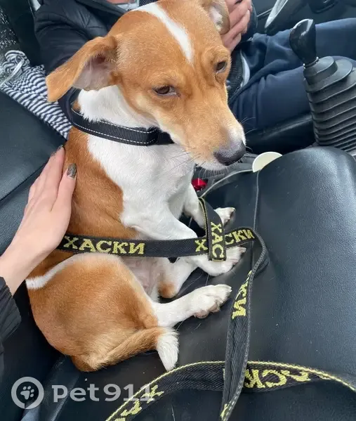Собака нашлась в лесу, рядом лежала красная мисочка и влажный пакетик с кормом. Собака была на растянутом ошейнике, он просто на ней висел, к ошейнику был пристегнут поводок. Она выбежала к проезжей части, а потом убежала обратно, где лежала миска. К рукам подходит, не агрессивна. Ухоженная и очень упитанная. На вид около 5 лет