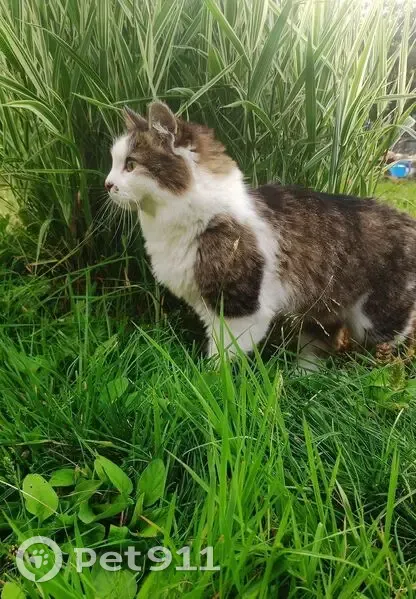 17.10.25, в дневное время выбежал из квартиры в подьезд, после чего на улицу. Кот не крупный, пушистый, отзывается на имя Саша. Нет клыков на правой стороне, верхнего и нижнего,кастрирован. Цвет бело-коричневый