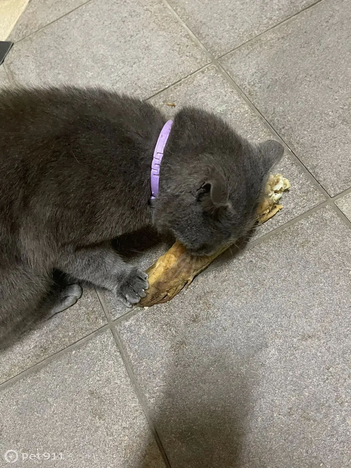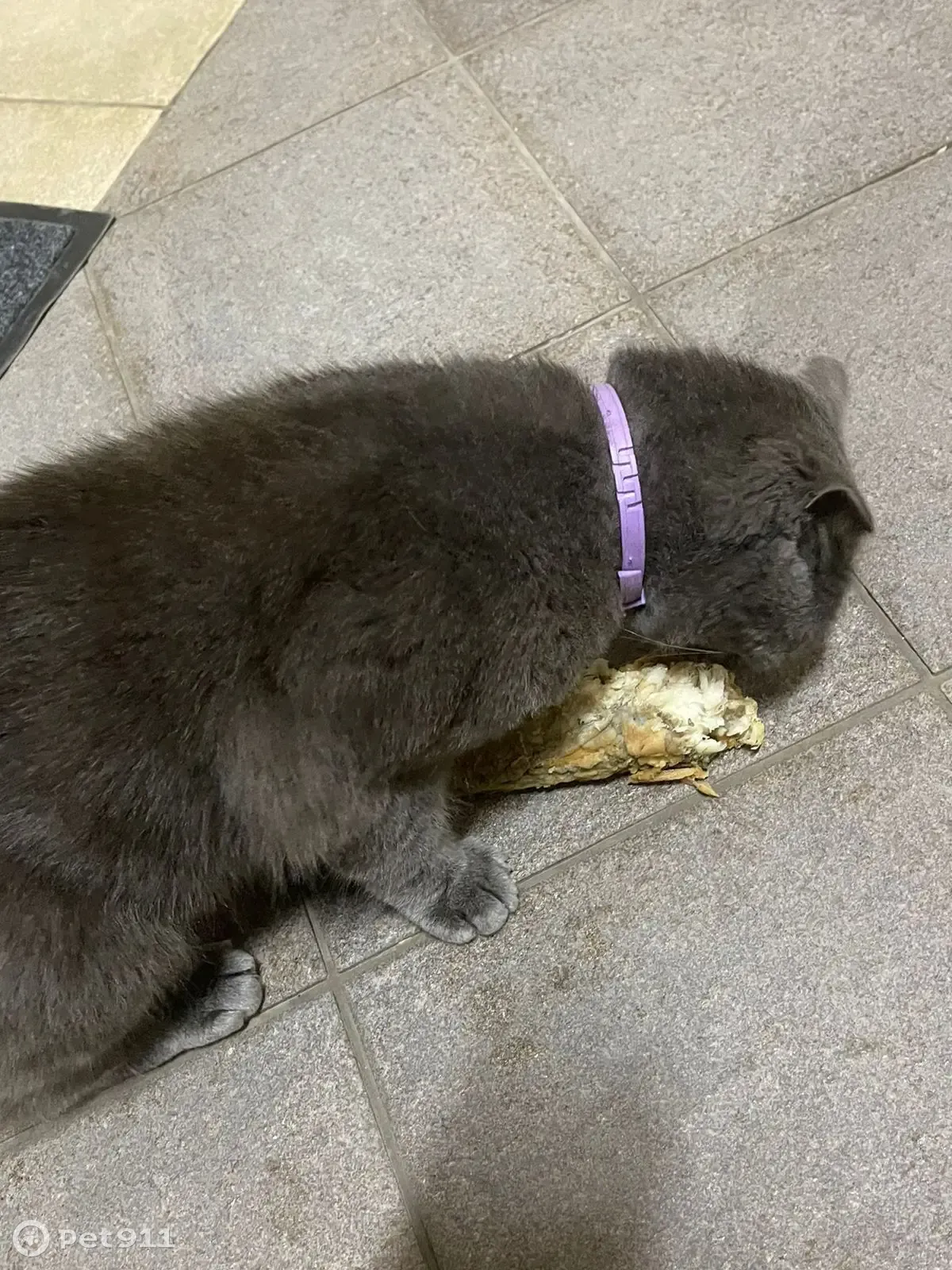 Несколько раз выгонял кота, думая, что обычный бродячий, но он снова и снова возвращался. Потом заметил на нем ошейник фиолетового цвета. Пришлось прикормить, чтобы хоть как-то сфотографировпть, очень долго не доверял мне.