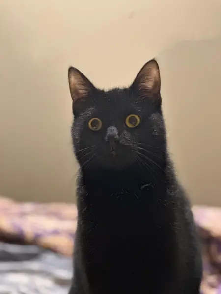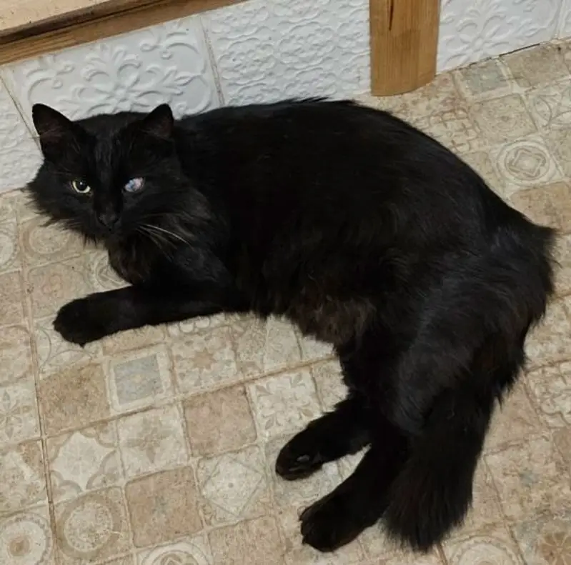 К остановке «ул. Фабричная» в Гурьевске прибился ласковый черный котик с белым пятнышком на грудке. У него, похоже, проблемы с левым глазом (зрачок выглядит странно). Спокойный, идет на контакт, возможно, домашний - уже несколько дней сидит на месте.