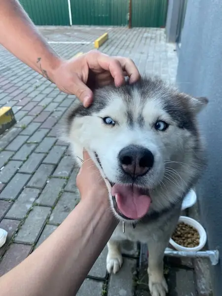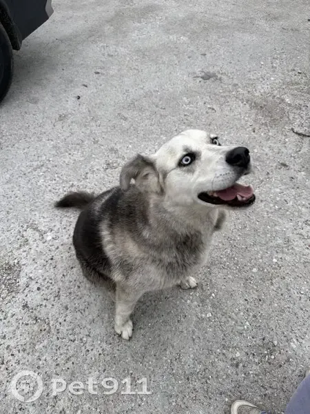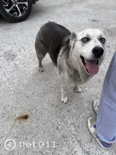нашли собаку большую бегала на детской площадке в парке света в Гурьевске. Естественно это многим не нравилось девочка, наверно на половину хаски и знает команды