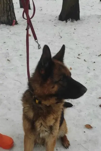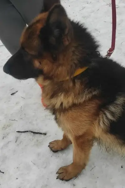 , чепрачного окраса, разные уши(на одном ухе спайка шрам при щинке ещё было, ухо короче другого) . На задней лапе шишка. Знает команды: лежать, сидеть, лапы разные подаёт, умри ! Он все команды, так же жестоми руки понимает. Зовут Грауз, в семье Грося. Кто увидит его , звоните 89003460328