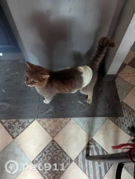 Кот, серый, после операции, на животе шов, глаза грустные желтые, убежал в кусты школьной территории за железный забор рядом с клиникой Белый Буль, вырвался, прячется где склад магазина Мир обоев и ТЦ рядом, выходит ночью, дрался с котом соседским в траве и убежал на территорию склада, днем прячется и не выходит, положили приманку в виде корма воды. Боимся что убежит дальше и не найдем. Еще может прятаться в жилом деревянном строении рядом.
