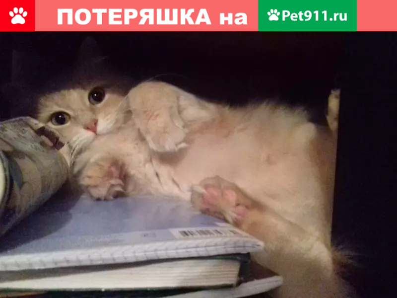 Пропал кот на Менделеева 23, светло-рыжий, откликается на Фокс