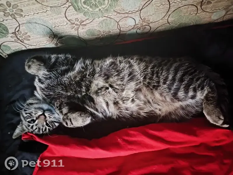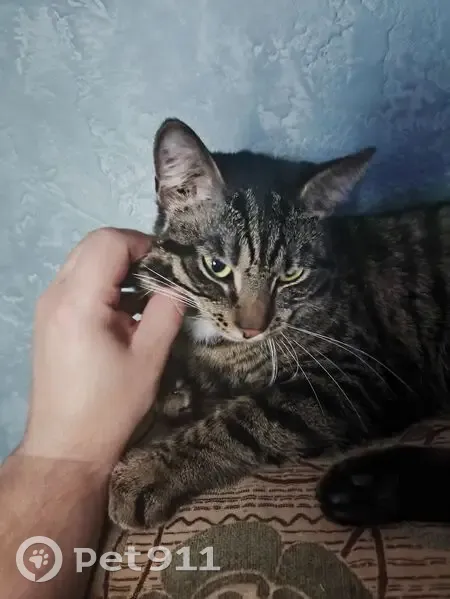 Окрас сложно описать словами, приложены фото. Из особенностей - небольшой участок шерсти на шее "галстучек". Кота брал с улицы котенком, 11 месяцев назад, все это время жил в квартире. Убежал в открытую форточку ванной комнаты поздно вечером, примерно 22:00 - 23:00