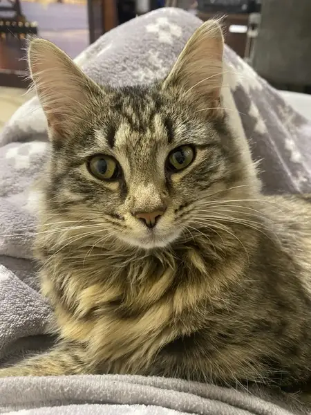 Найден серый пушистый кот на улице Багратион. На вид домашний. Кто потерял звоните по телефону .