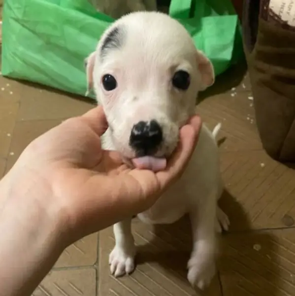 Пропала наша красавица,помесь стаффа. Белая с чёрными конопушками на морде и ушах. На ней был зелёный ошейник. На пузе диатез( нуждается в лечении). На ошейнике кольцо от адресника. 13 июля,около пяти часов вечера,она,только ей ведомым путём, ушла с участка. Ей 9 месяцев. Помогите найти и вернуть радость жизни!