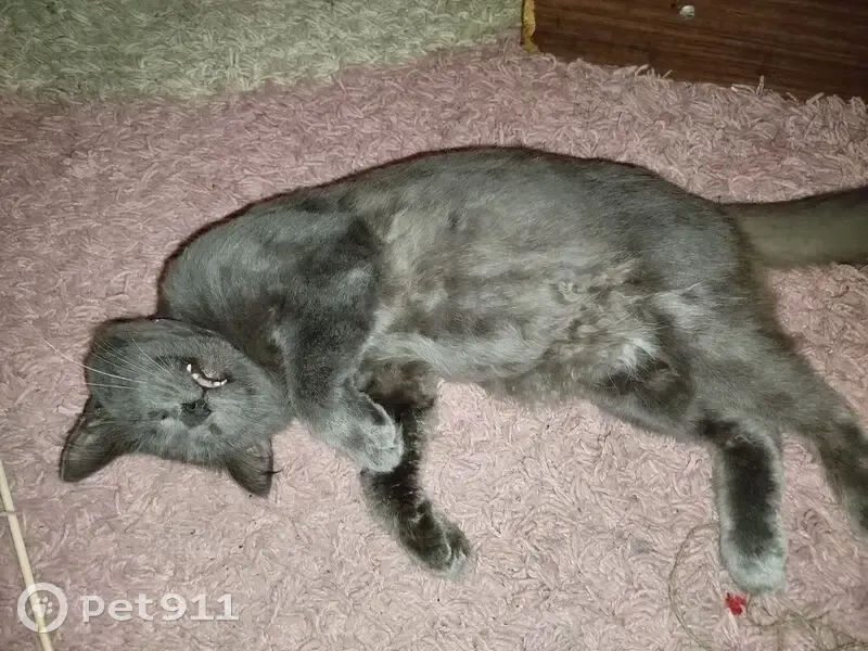 Загулял по кошкам и до сих пор не вернулся. Окрас серый. Оттенок хвоста темнее, выше шерсть как будто выгорела. Нет нижних передних зубов и верхнего клыка. Хвост пушистый, сам тоже в меру пушистый. Похож на породистого. Характер нордический. Вздыхает, когда что-то не нравится. Но контактный, любит просить прохожих его погладить. Ничего не боится, не убегает от собак, ввязывается в драки. На имя отзывается только если хочет отозваться.