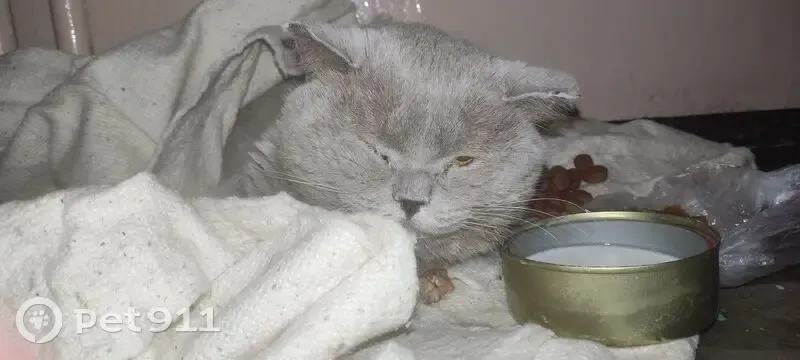 В подъезд прибился кот (судя по внешнему виду). Окрас серый. Ни ест, не пьёт, что-то с глазами. Адрес Розы Люксембург, 239, 2й подъезд.