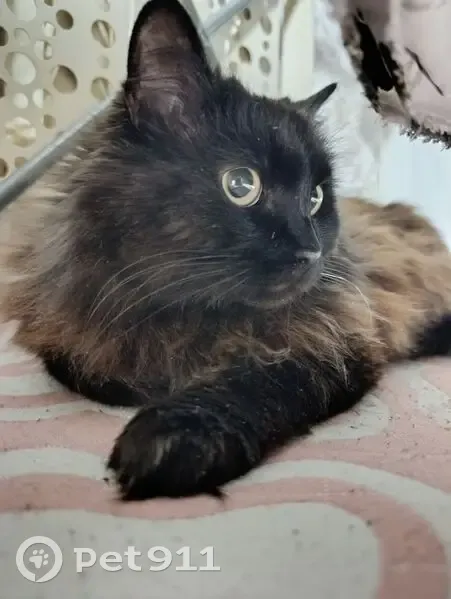 Окрас черный с рыжим, кошка сидела под машиной, сама полезла на руки. Предположительно, самовыгульная - с лотком не знакома была, попросилась на улицу. Ласковая, любит лежать на человеке и пускать в него когти. Очень пушистая, вычес великодушно терпит. Человекориентированная, но спокойно одна остается на весь день. Возраст и пол пока не знаем, после визита к ветеринару дополню объявление
