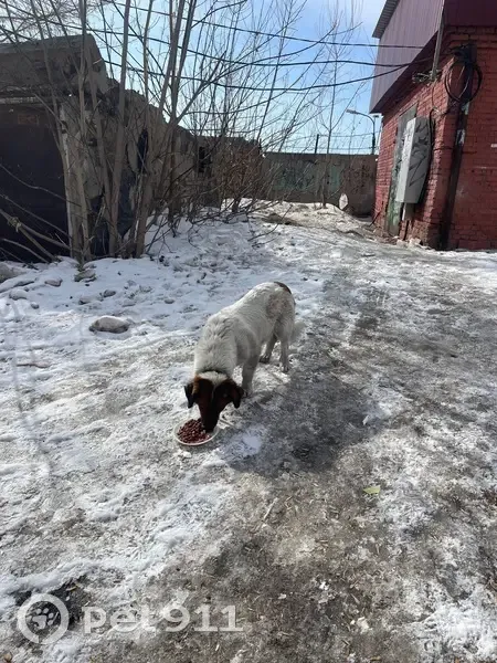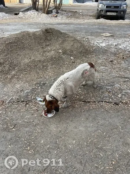 Район: БЦ «База», Байкальская 188/1. Время обнаружения: ежедневно в промежутке 8:00–9:00 утра. Приметы: есть ошейник. На боку рана (предположительно укус или аллергическая реакция). Особенности поведения: питается на помойках, но знает команду «кушать» (без команды к еде не приступает), что указывает на ранее домашнее содержание. Контактна, спокойна.