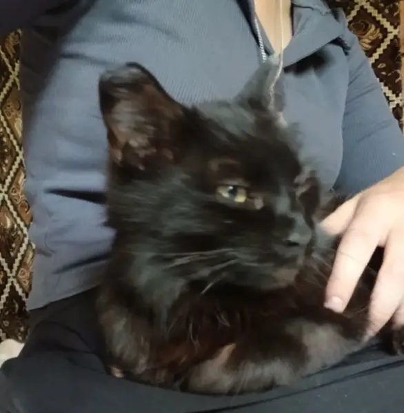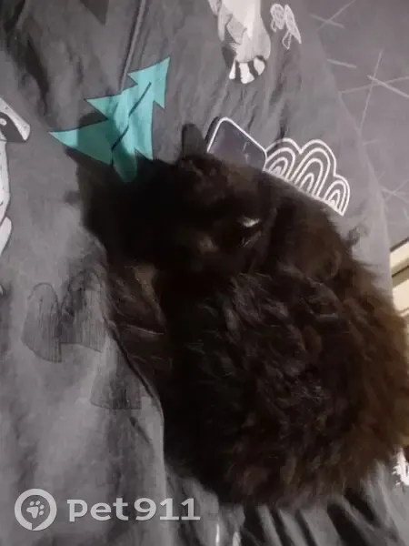 Шоколадно-черного окраса(бока коричневые пушистые, холка гладкая черная), над правым глазом маленькая лысина(шрам). Сейчас у него линька, возможно шерсть стала полностью черной Ушки по краям беленькие, правое ухо чуть рваное Отзывается на кс-кс На свою кличку Мерлин не отзывается Вышел погулять и не вернулся