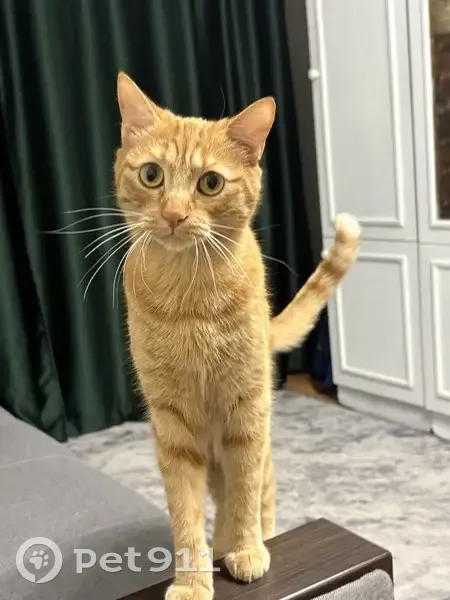 Рыжий окрас, худенький, длинные лапы и хвост. Он выпрыгнул в окно (живем на первом этаже) и по следам было видно, что запрыгнул в подвал. Однако весь подвал мы обошли и его там нет. Любим мокрый корм шеба, можно попробовать им приманить