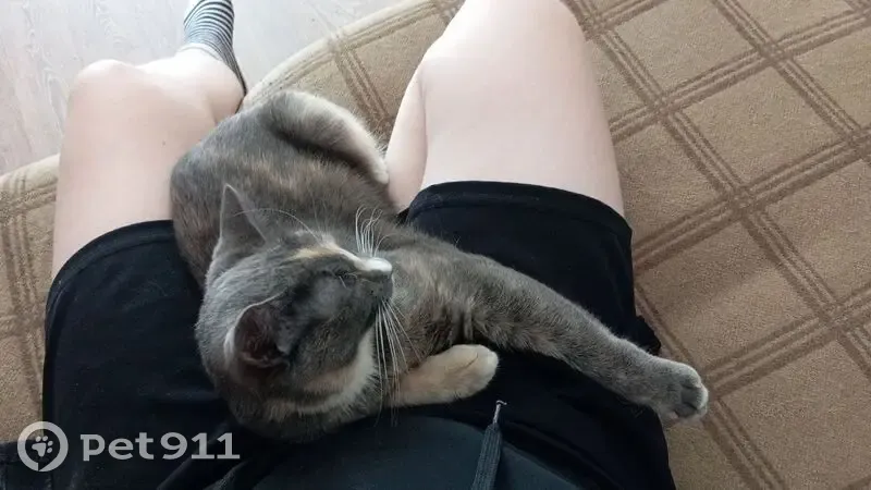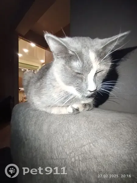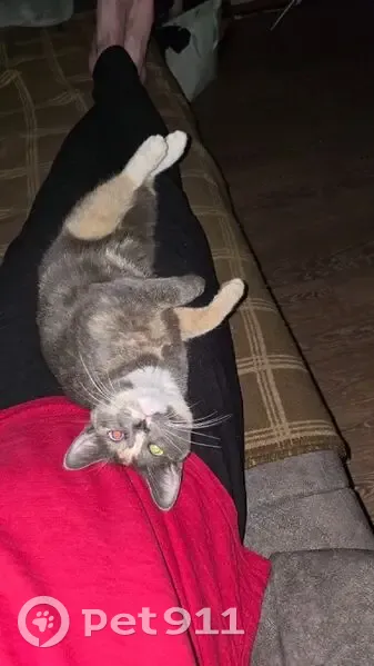 серая со светлым животом и вкраплениями желтой шерсти, белые "носочки" на лапках, глаза с гетерохромией один голубой второй зелёный, хвост не ровный в 2 местах Кличка просто "кошка", выпала с балкона и убежала испугавшись.
