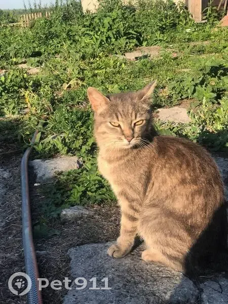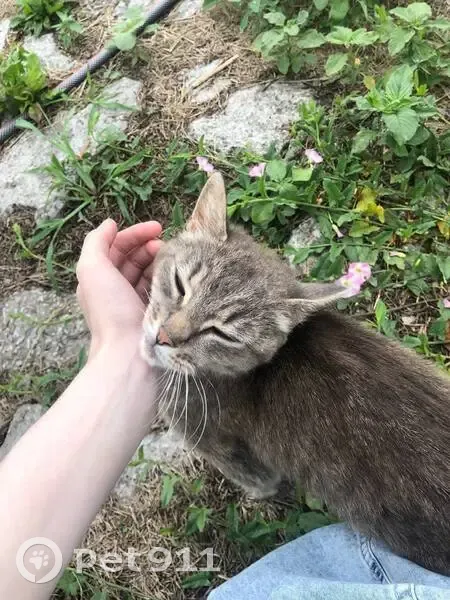Серая, короткая, немного жестковатая шерсть, с очень бледными полосками на теле (более пигментированные полоски на лапах, хвосте и голове). Очень маленькое, чуть более светлое пятно на грудке. Комплекция средняя. Глаза бледно-зеленые, на солнце выглядят желтыми. На самом деле довольно круглые, но мадам любит щуриться. Нашли в июне. Ну, как нашли - окотилась в сарае на нашем участке. Ручная, людей не боится, позволяет брать себя на руки, вполне приучена к отхожему месту. Очень ласковая и тактильная. Обжора. Из минусов - агрессивна к другим животным. У меня дома уже есть кошка, так что не могу держать гостью в помещении (несколько раз цапались), а скоро будет холодно. Ищу хозяев потеряшки. Будет славно и котят ее пристроить (3 штуки, все разного окраса и характеров, им в районе 2.5-3 месяцев, корм кушают), я пока потихоньку пытаюсь заниматься их социализацией. Иногда звонки с незнакомых номеров определяются моим оператором как спам, так что если не смогли дозвониться, напишите либо в ваттсап по вышеуказанному номеру, либо в телеграмм. (В телеграмме указано имя Женя, все в порядке, не пугайтесь.)