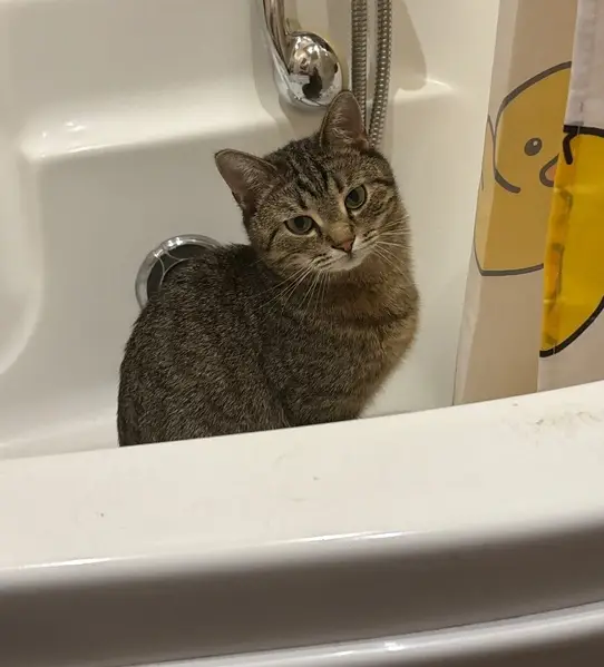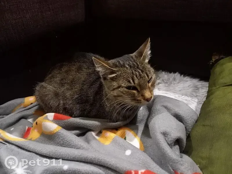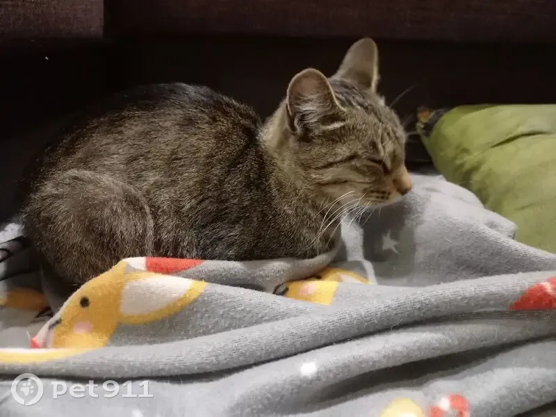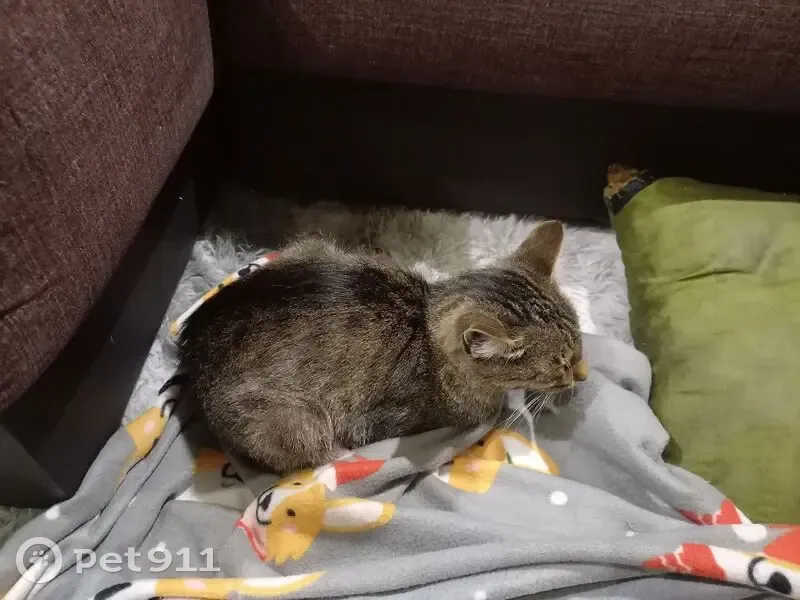 Серый окрас, коричневый носик, серый хвост, лапки коричневые, глаза зеленого цвета, возраст 5-6 месяцев. Телосложение худое. Нашлась около дома одежды на улице Суворова.