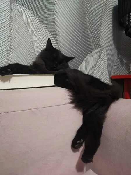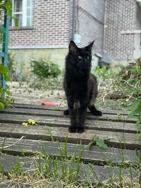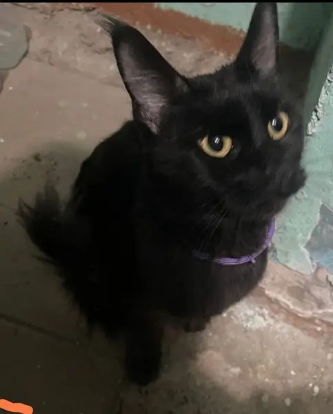 Мальчик, возраст 1-2 года. Черная длинная шерсть, зелёные глаза. Судя по всему, в роду пробегал мейнкун. Очень тихий, ласковый, не боится людей, приучен к лотку