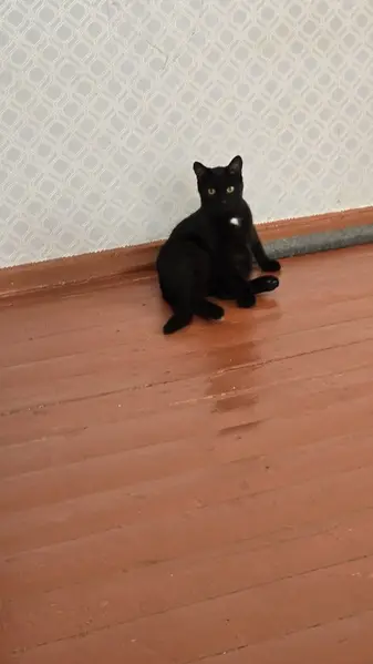 Кошка найдена в подъезде. Белое пятнышко на грудке и на животе.