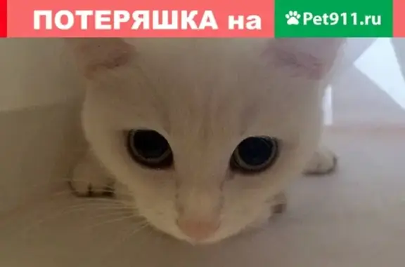 Скорее всего это кот, чисто белый, глаза желтые, с серым ошейником. Видно что потерялся, бегает с испуганным взглядом, ищет хозяев, мяукает. Размер средний 3-5 кг. Кота пришлось оставить там, вдруг его ищут именно сейчас его хозяева