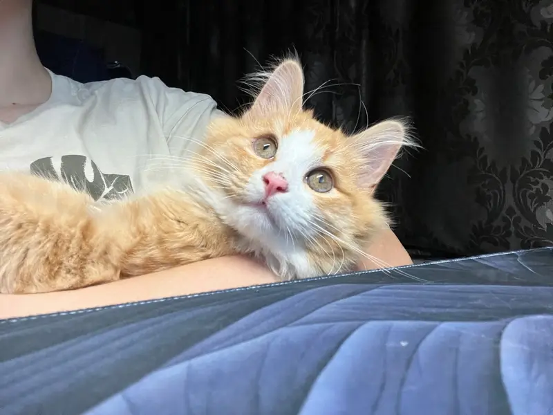 Добрый вечер. Нашли у подъезда котёнка, примерно месяца 2-3. На удивление лоток знает, кушает корм. Скорее-всего выкинули за ненадобностью, в хорошие руки.