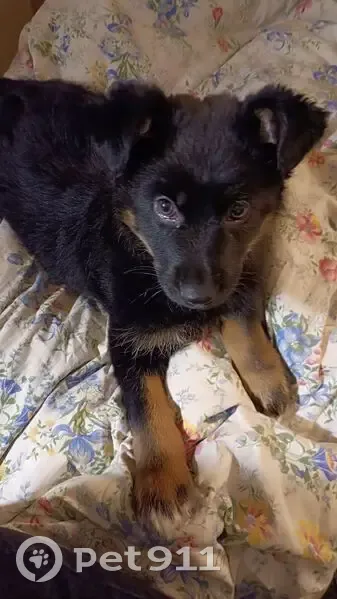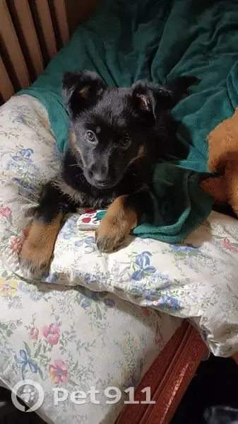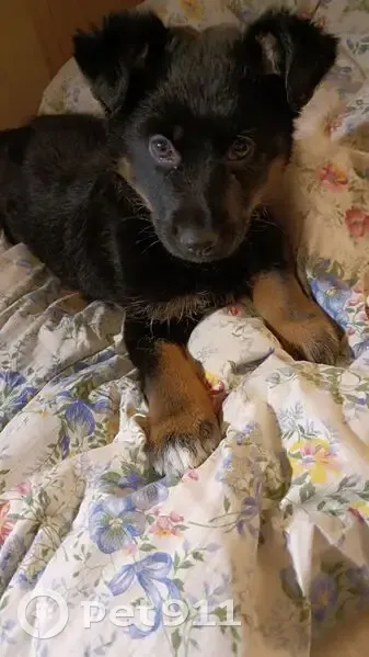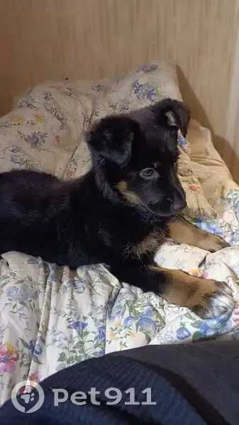Щенок 2 месяцная,девочка,помесь овчарки,окрас чепрачный,на кончике хвоста есть белая кисточка. Нашла дочь у дороги на против библиотеки,чистая без блох. Отдам старым хозяевам или новым