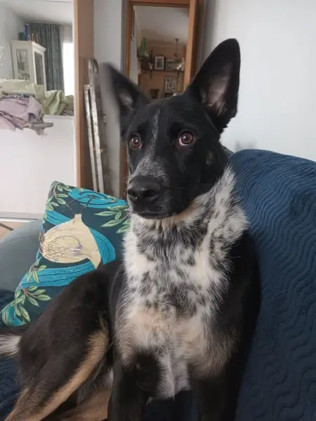 Собака ухоженная, активная, дружелюбная. Кабель.