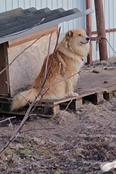 Окрас рыжий, шерсть пушистая. Шикарный хвост, объемные штаны. Среднего размера молодая сука. Очень ласковая. Видели бегающую в районе 14 п/о в Пустошь-Боре весь день 27 апреля. Подбегала к людям, ластилась. Вечером дали сухого корма, затем взяли домой. Обратили на нее внимание, т. К. Очень похожа на нашу собаку породы Ауси, только мельче.