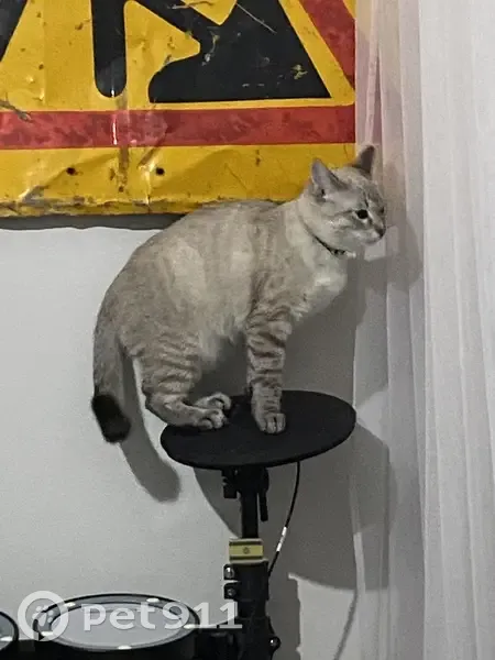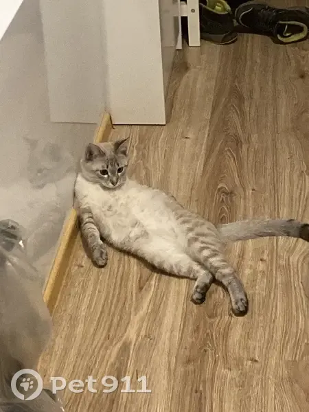 котенок немного косой (глазки слегка смотрят в середину) разговорчивый, откликается на кис кис и ,,пончик вкусняшка,, без ошейника, ласковый и скорее всего попал под ливень, он боится грозы и собак (однажды залазил на дерево) может находится под машиной тоже, домашний но изредка раньше гулял по участку в деревне
