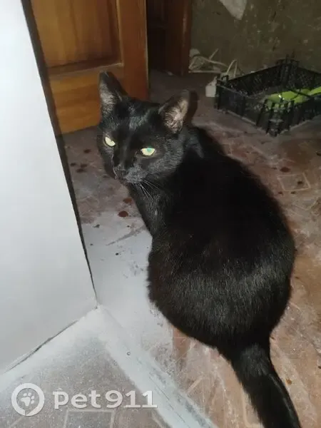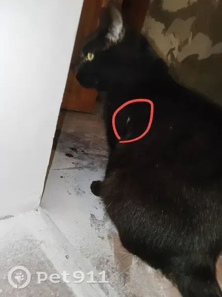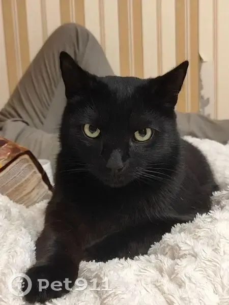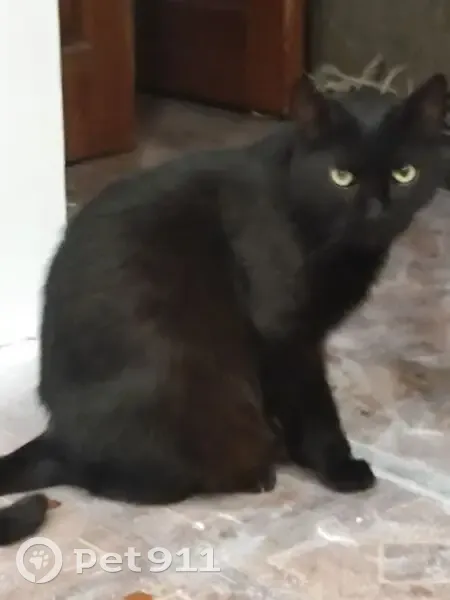 мальчик ,9 лет ,черный окрас,есть пятно-пушок белого цвета внизу живота ,и небольшое еле заметное пятнышко около левой передней лапы в верхней части, кастрирован , глаза светло жёлтые