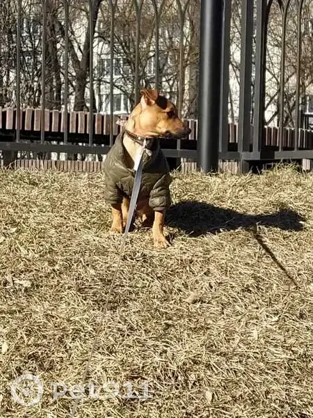 Маленький, смесь Джека Рассела и той терьера, размером с той терьера, по фигуре похож на Джека Рассела. Коричневый окрас, белые пятна на груди и животе, хвост крючком. Убежал на вечерней прогулке, спустили с поводка, погулять с другой собакой, убежал внезапно. Одет в зелёную жилетку и красную шлейку.