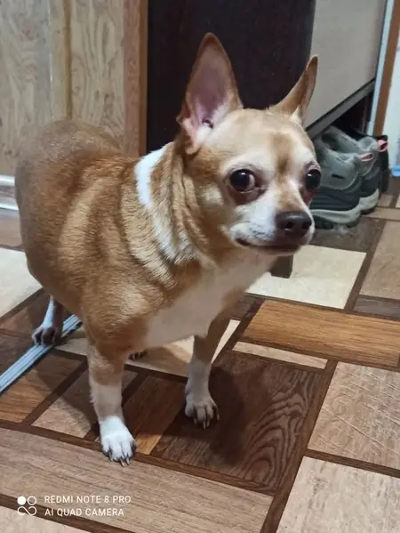 порода Чухуахуа, пол кобель, окрас рыжий с белым, с левой стороны верхняя губа приподнимается из-за выпирающего клыка, под носом с левой стороны родинка, пропал 19.07.22 в период с 13-30 до 15-45 со двора в Ивановском районе, ул. Светлая, дер. Дьяково. Может запрыгивать в открытые двери автомобилей.