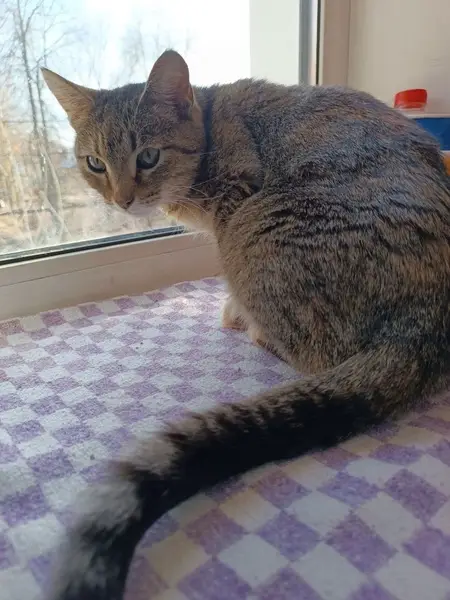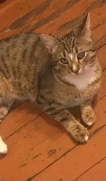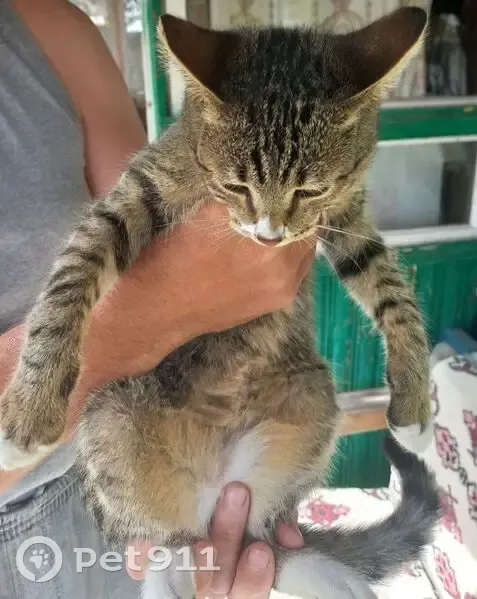 Активный маленький котенок. Охотно кушает корм и умеет ловить мышей. Ловко залезает на деревья и перепрыгивает через забор.