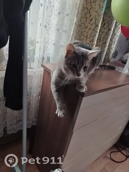Это котик мужского пола он не приучен к улице ненарочно выбежал и убежал от нас у него серый и пятна как у леопарда
