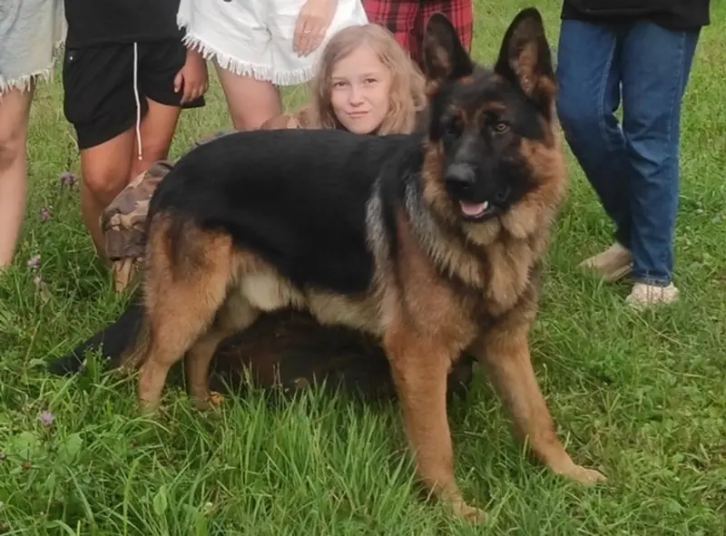 Немецкая овчарка.Примерный возраст около 2 лет.В ошейнике светло-коричневого цвета.Клеймо отсутствует.Ухоженная.Не течная(кобели не пытаются сделать садку).Бегала возле забора школы.Вчера ее там ещё не было.