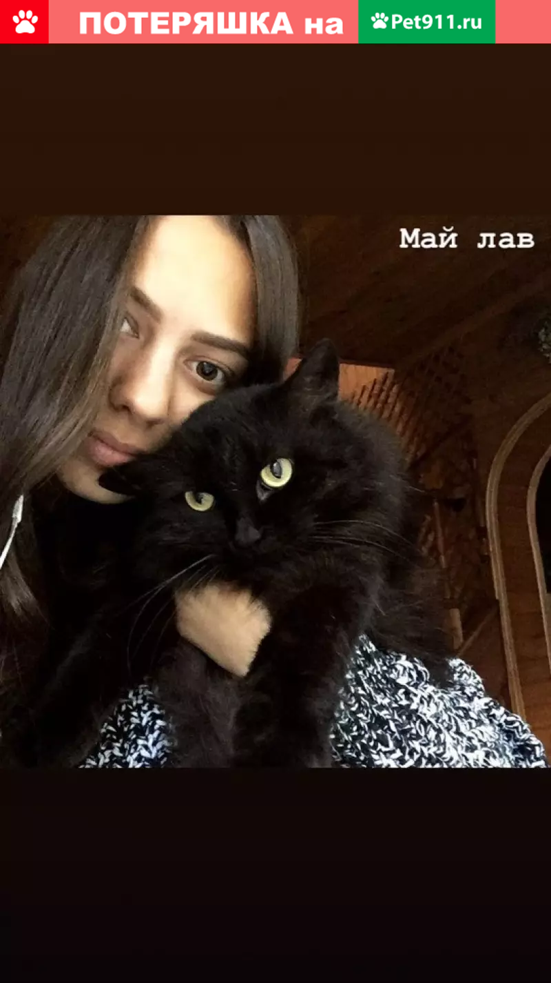Пропала кошка в ночь на 11 мая. Черная пушист...