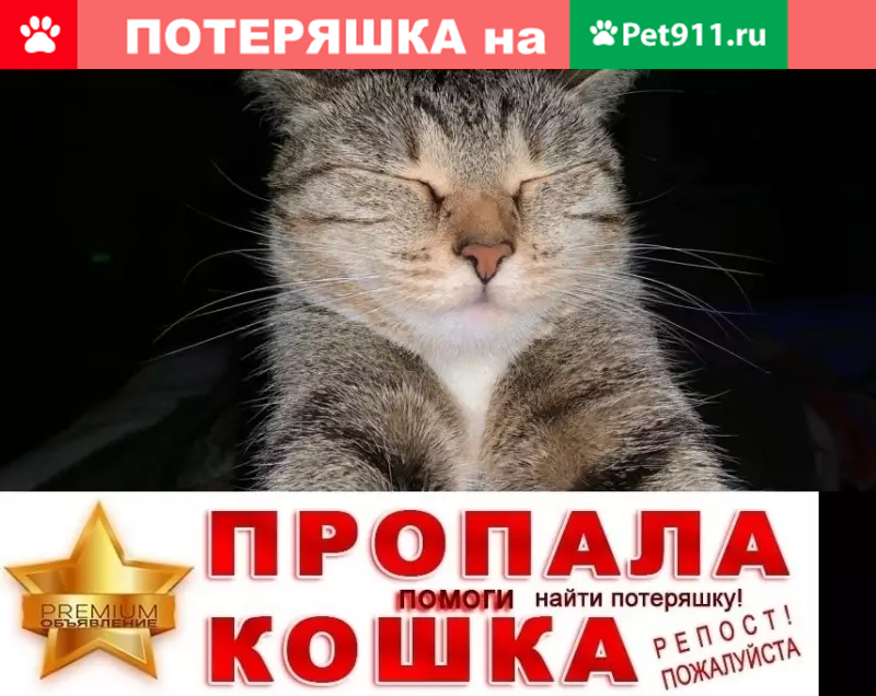 Потерянные животные Москва, фото: Пропала кошка на Ярославском шоссе 117