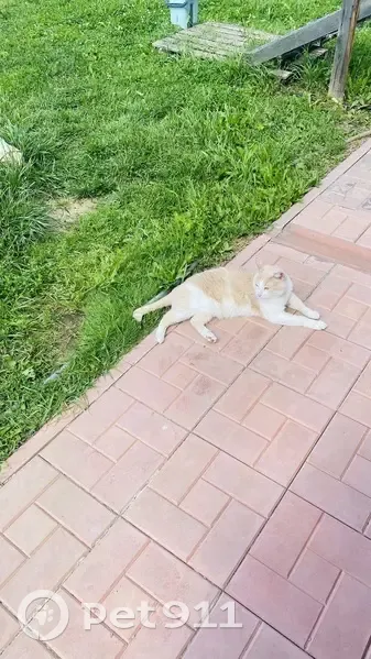 Персикового цвета с белым (светло-рыжий), кончик хвоста сломан это видно сразу, он буквой Г. Кот живет в квартире, приезжаем в деревню на лето, из дома особо не выпускали, только иногда, гулял по участку и всегда возвращался. Выпускали часов в 7, а в 9-10 уже всегда приходил домой. 4.06 вышел в 7 утра и до сих пор не вернулся. Боится громких звуков, мог с легкостью нырнуть в подвал дома (если есть вход с улицы).