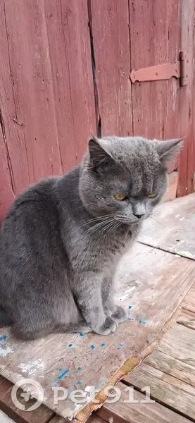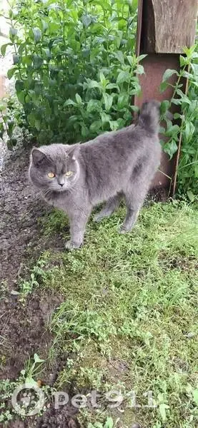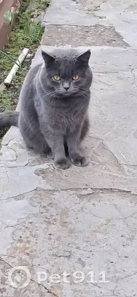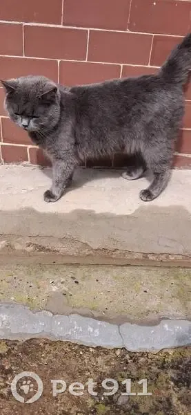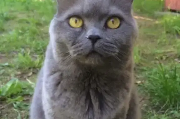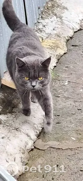 Кот-потеряшка. Находится в пер.4-й Тракторный (Татар-базар) Возвраст 1-2 года, окрас серый, с ошейником. Очень ласковый, умный, красивый. Похож на британца Здоровый.
