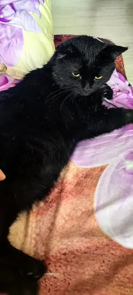 Чёрный окрас, «похож на британца», спокойный, очень ласковый, приучен к лотку.