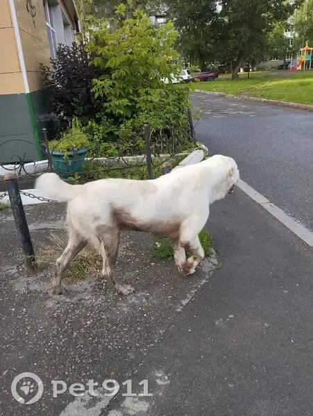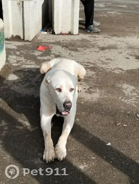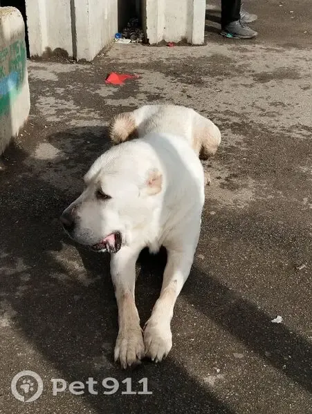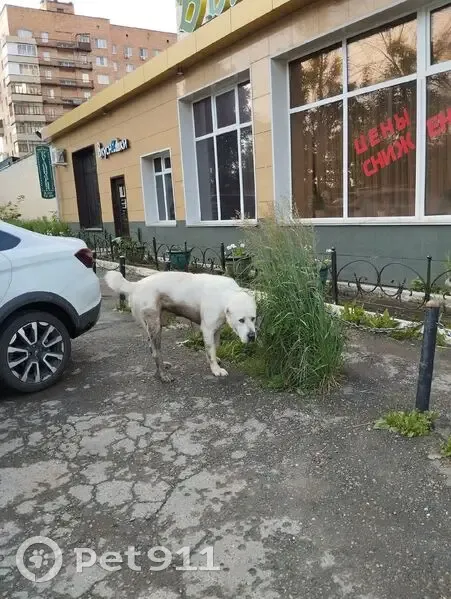 Крупный кобель алабая был замечен возле кафе Былина. Полностью белого цвета. Возможно ему еще нет года или очень молодой. Очень растерян, не понимает куда ему идти, не понимает что такое машины и проезжая часть. По поведению, видно, что впервые в городе (возможно жил в частном секторе). Мужчин игнорирует, к женщинам более расположен. Не агрессивен, понимает команду сидеть/лежать. Очень его жаль, я покормила его своим обедом и села на свой трамвай. К сожалению, взять его с собой я не могла. Пес замечательный! Хозяин найдись! Очень надеюсь, что он просто убежал за сукой и хозяева его ищут.