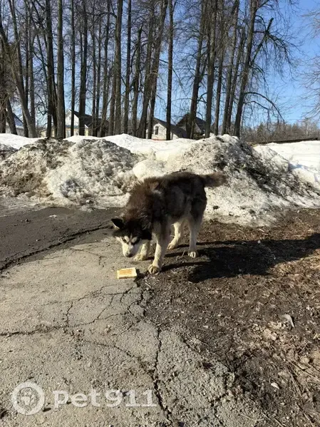 Найден хаски , вроде мальчик. Район малиновой горы. На первый взгляд возрастной. Есть след от ошейника , голодный.