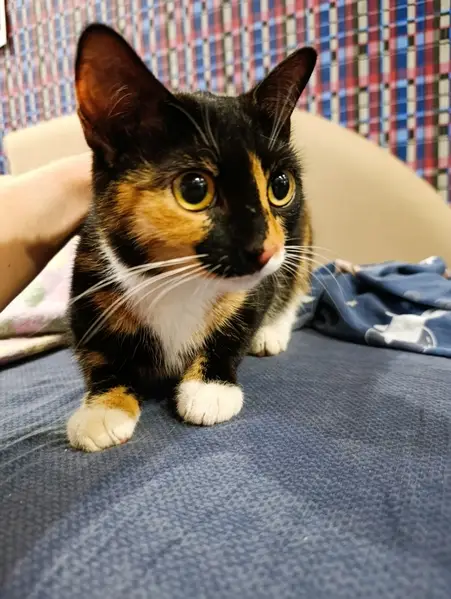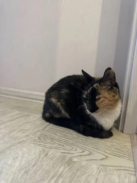 Окрас черепаховый, черный нос, морда разделена на темную половину и светлую. Кончик хвоста рыжий. Короткошерстная. Контактная, но на кличку не откликается. Кошке 11 лет. Возможно, выскользнула из квартиры вместе с бабушкой или детьми. Похожую видели около ЖК "Матрешка-сити".