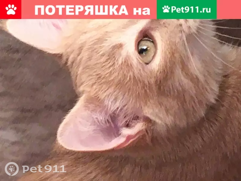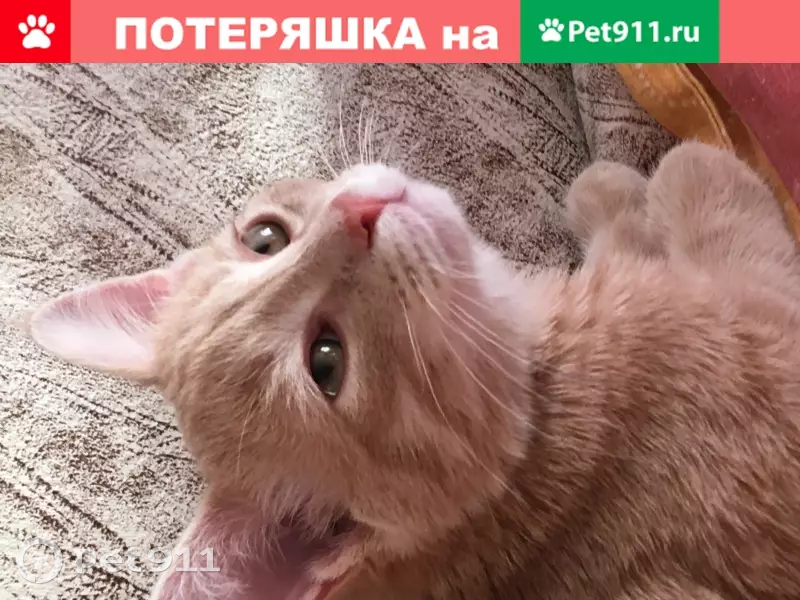 Котенок рыже-пепельного цвета, возрастом 4-5 месяцев. Выпал из окна в ночь с 7 на 8 мая. Нашедших, просьба позвонить по номеру