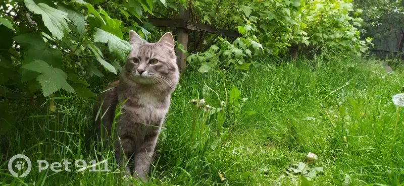 Кот, окрас серый, хвост пушистый, летом чуть менее пушистый, чем зимой. Зовут Стёпа. Он пугливый, и вряд ли пойдёт к людям. На боку сверху есть выбритый участок после УЗИ. У кота есть привычка уходить гулять на несколько дней, но максимум на 3-4. В этот раз ищем и ждём кота уже неделю. Скорее всего он ходит туда, где есть кошка.