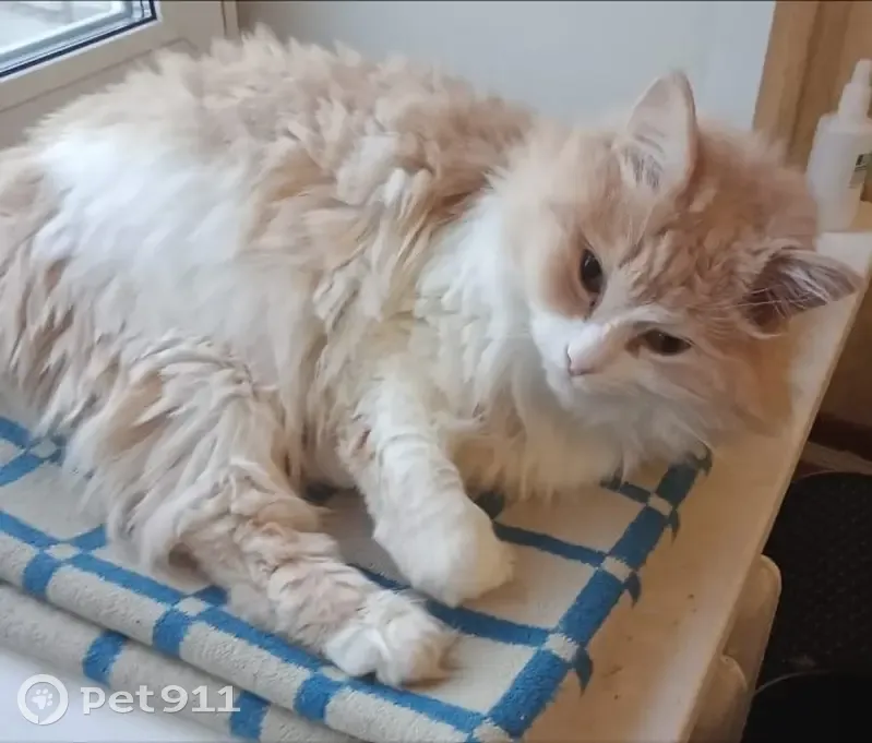 Породу не знаем. Окрас: рыжий с былым большой и пушистый. Глаза умные, домашний. На руки ни кому не дастся.