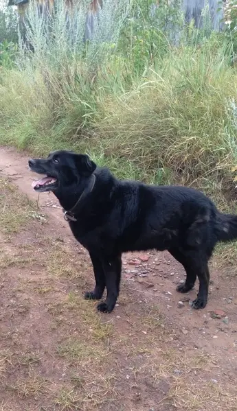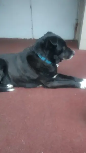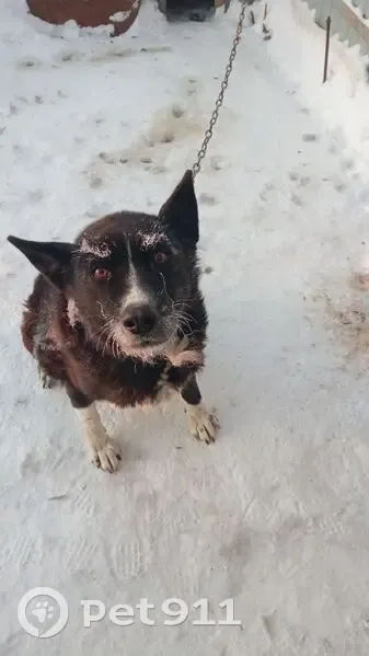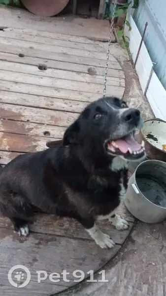 Чёрный окрас, белые носочки и на груди белое пятно, без ошейника плохо слышит, уже в возрасте,задние лапы слабые, живёт на улице в будке в частном доме, ворота были закрыты, как пропала не видели.