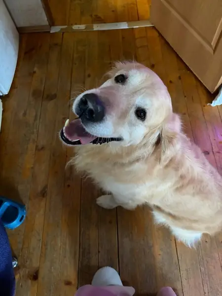 Кличка Юки, возраст 4 года. Окрас светлый (бело-персиковый). Пса сбила машина, от шока и испуга убежал в лес. Не агрессивен, но к людям не подходит. Крови от удара не было, но не известно, что с внутренними повреждениями. Был одет синий ошейник.