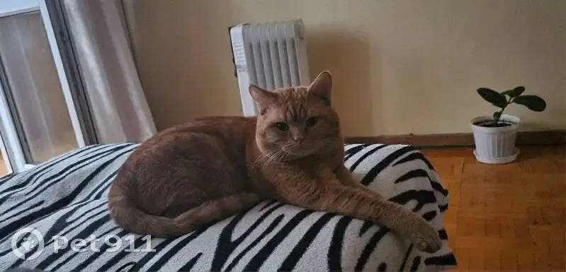 Большой Рыжий кот с ошейником. На ошейнике ри...